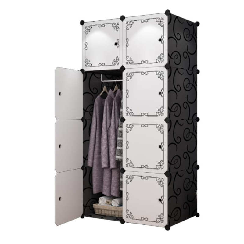 Panourile flexibile din polipropilenă (PP) sunt susținute de un cadru metalic robust și asamblate cu ajutorul conectorilor din ABS de înaltă rezistență. Acest sistem de tip DIY (do-it-yourself) vă oferă libertatea de a monta dulapul rapid, fără unelte, și de a-i reconfigura forma în funcție de spațiul disponibil în cameră. Materialul este ecologic, impermeabil și rezistent la praf, asigurând o protecție optimă obiectelor depozitate. Designul său minimalist și curat îl face potrivit pentru dormitoare, holuri sau chiar spații de birou, aducând un plus de ordine și stil oricărui interior.