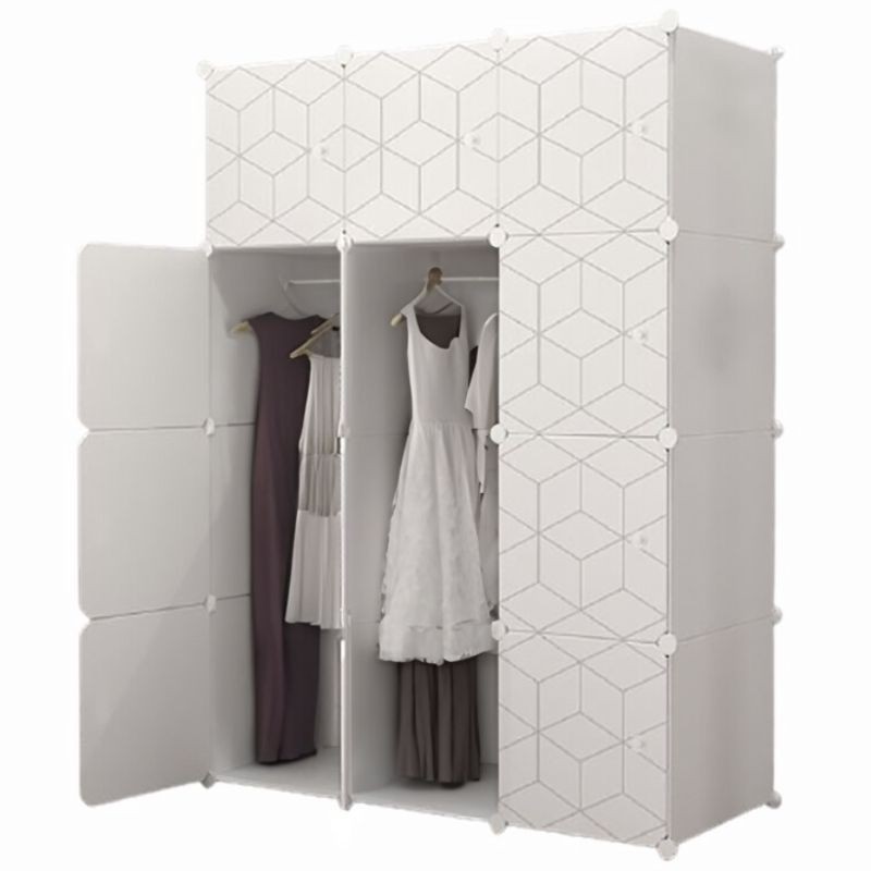 Panourile sunt fabricate din polipropilenă (PP) ecologică, un material non-toxic, flexibil și surprinzător de rezistent, susținut de un cadru metalic ranforsat. Imprimeul geometric adaugă o notă de eleganță minimalistă, făcând ca acest dulap să se integreze ușor în orice decor interior contemporan. Un avantaj major este întreținerea extrem de simplă: materialul este impermeabil și anti-praf, putând fi igienizat rapid cu o lavetă umedă. Sistemul de montaj DIY (do-it-yourself), prin conectori din ABS, permite asamblarea rapidă fără unelte grele, oferindu-vă libertatea totală de a reconfigura modulele în funcție de evoluția nevoilor de stocare sau de dimensiunile camerei.