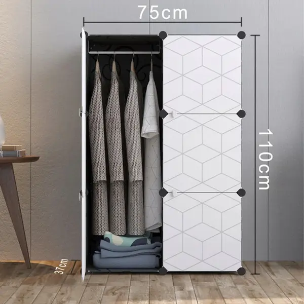 Panourile din polipropilenă (PP) sunt susținute de un cadru metalic rezistent, asigurând o structură stabilă, dar ușoară în același timp. Materialul este complet impermeabil și rezistent la praf, fiind extrem de simplu de întreținut prin simpla ștergere cu o lavetă umedă. Sistemul de asamblare de tip DIY (do-it-yourself), bazat pe conectori din ABS de înaltă rezistență, vă permite să montați dulapul rapid, fără a fi nevoie de scule sau șuruburi. Designul său minimalist, disponibil de regulă în nuanțe neutre de negru sau alb, se potrivește perfect în dormitor, camera copiilor, hol sau chiar în debara.