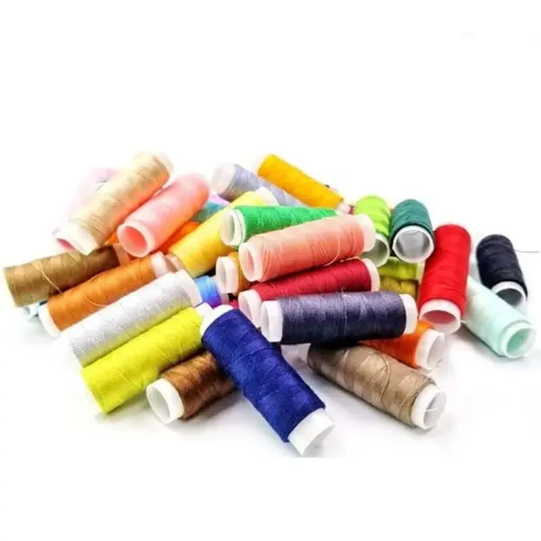 Conținutul setului este atent ales pentru a acoperi cele mai frecvente nevoi de cusut. În interior se regăsesc ațe de cusut în multiple culori, rulate pe bobine individuale, permițând potrivirea cu o gamă variată de materiale și nuanțe textile. Culorile vizibile includ tonuri clasice precum alb, negru, gri, dar și culori vii – roșu, albastru, verde, galben, portocaliu sau roz – ceea ce face setul extrem de versatil.