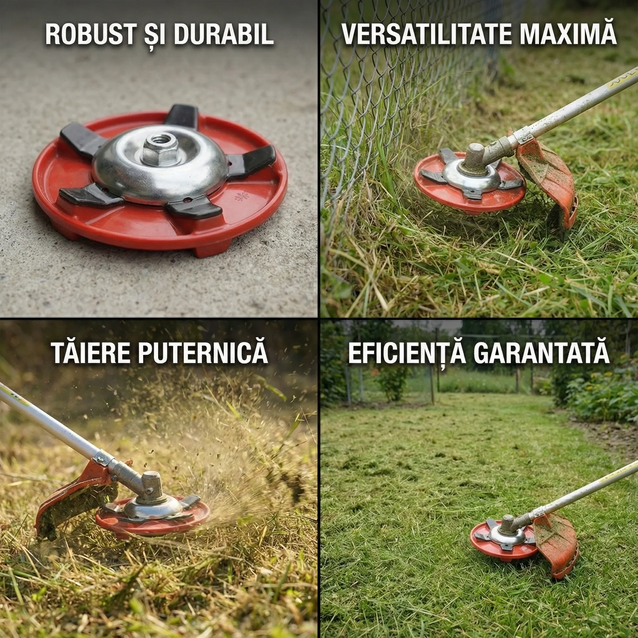 Nu trebuie să sacrifici performanța pentru siguranță. Acest disc este construit din oțel sau aliaje speciale rezistente la uzură, fiind capabil să reteze rapid vegetația densă, mărăcinii sau iarba înaltă de pe marginile drumurilor și din păduri. Este soluția perfectă pentru curățarea terenurilor accidentate unde riscul de a lovi pietre ascunse este mare.