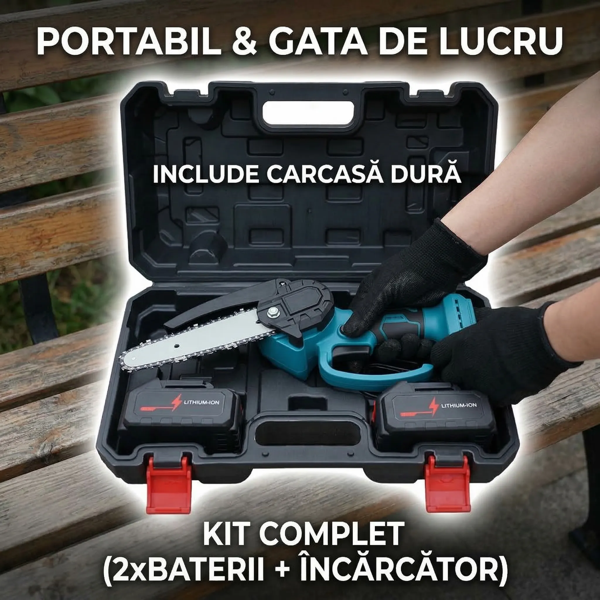 - Depozitare sigură: Geanta de transport inclusă protejează unealta și toate accesoriile, facilitând transportul la cabană, în livadă sau în pădure.
