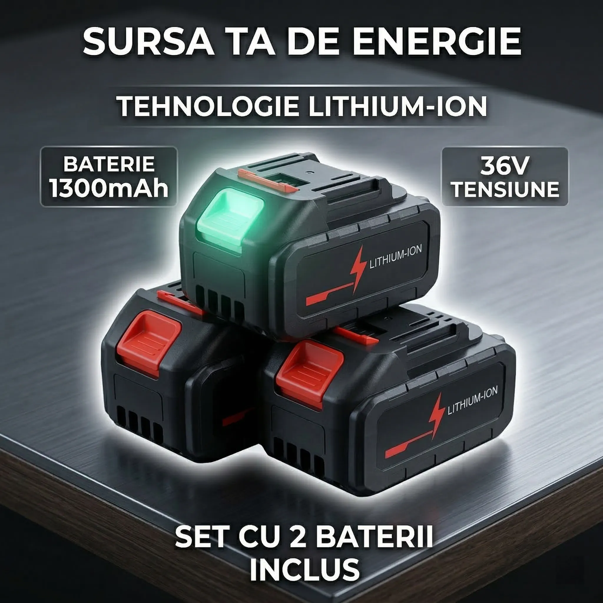 - Acumulatori: 2 x 36V, 1300 mAh Li-Ion