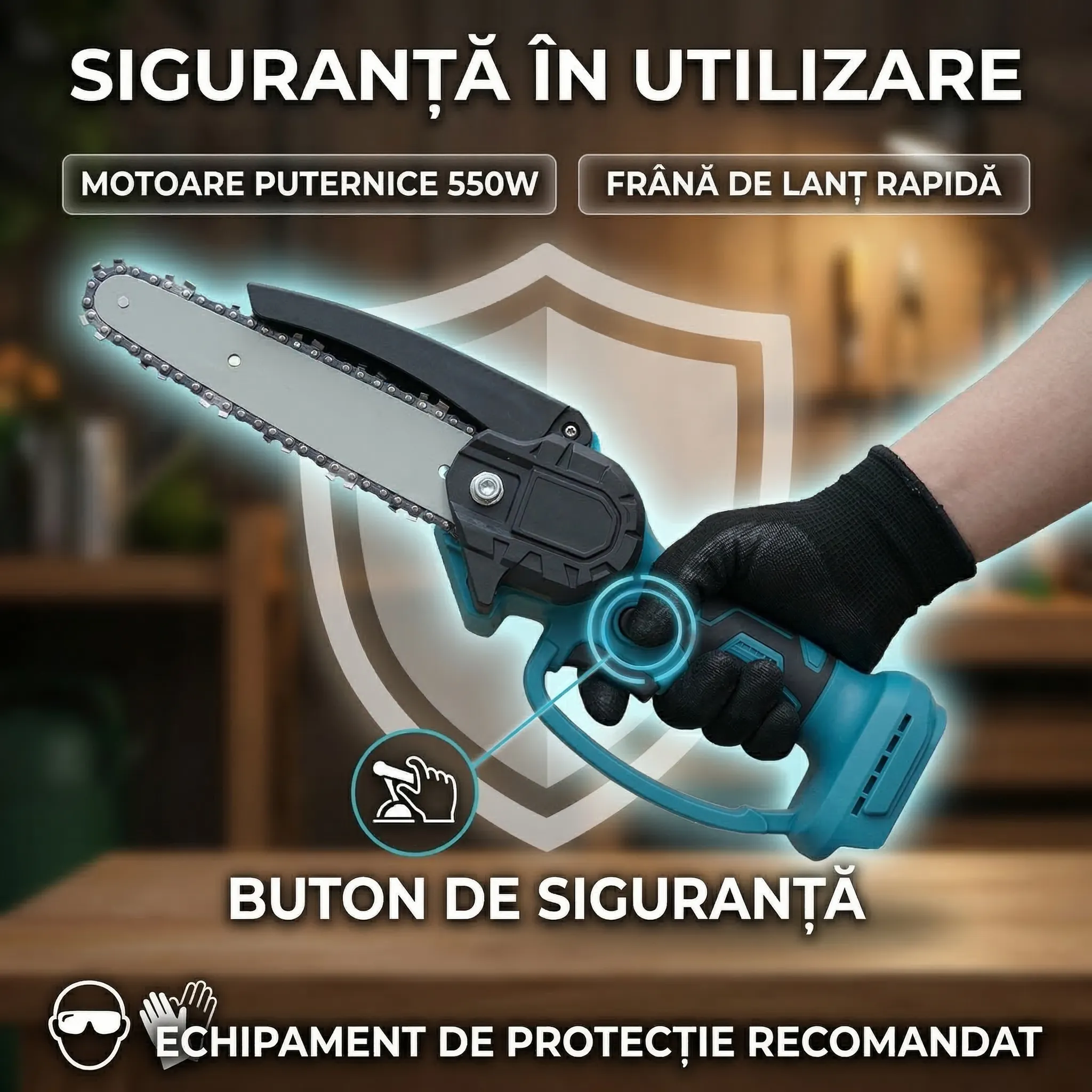 - Tip produs: Mini fierăstrău cu lanț electric (fără fir)