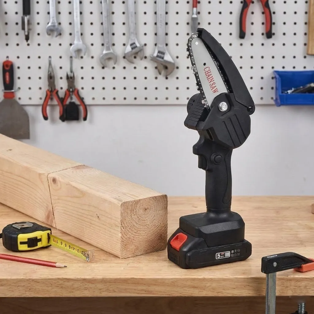 - Tip Produs: Mini ferăstrău electric portabil pe acumulator.