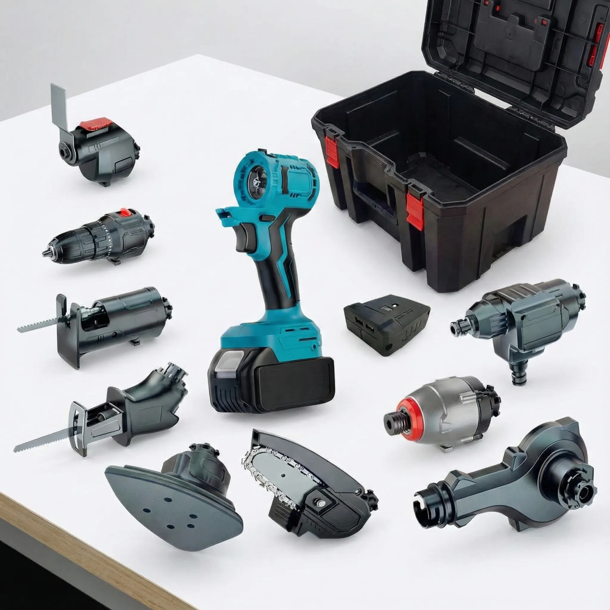 - Sistem Modular Complet: Include capete pentru găurire, tăiere, polizare, șlefuire și grădinărit.