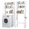 Raft Depozitare Baie Peste Toaleta sau Masina de Spalat – 3 Compartimente, Suport Hartie Igienica si Carlige Prosoape, Cadru Metalic Alb, Reglabil si Stabil, Inaltime 165 cm