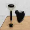 Set Rola de Masaj Facial cu Piatră Gua Sha din Jad Negru – Lifting Natural, Drenaj Limfatic și Relaxare Facială, Piatră Naturală, Efect Anti-Aging, Cutie Elegantă inclusă