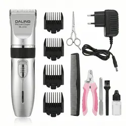 Îngrijește-ți animalul de companie confortabil acasă cu mașina profesională de tuns 8 în 1 Daling DL-D33. Echipată cu un motor silențios de 12W și lame din oțel inoxidabil, garantează o tunsoare precisă și fără stres pentru câini, pisici sau oi. Funcționează atât la priză (220V), cât și pe acumulator (autonomie extinsă de 150 min), venind la pachet cu toate accesoriile necesare: capete de tuns, clește pentru unghii, pilă și cutie de depozitare.